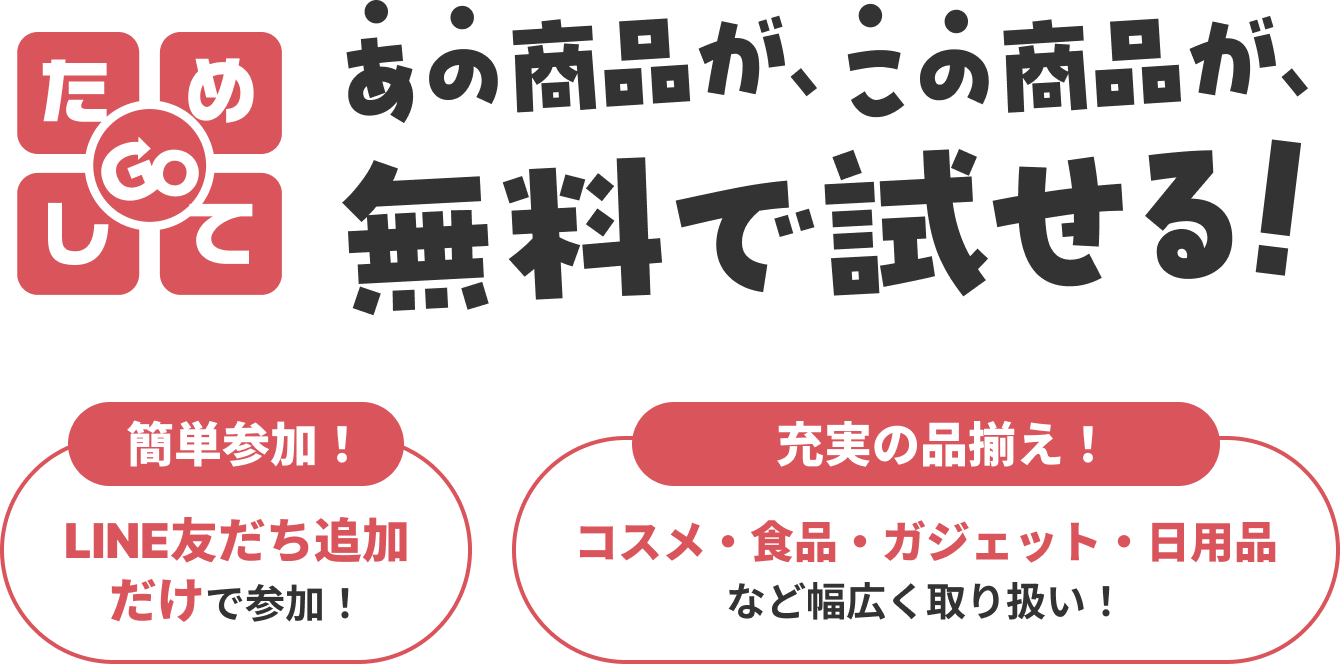 ※一部キャンペーンでは、所定の条件(アンケート回答や口コミ投稿など)を満たしていただく必要があります。 - Q. どんな商品が試せますか?